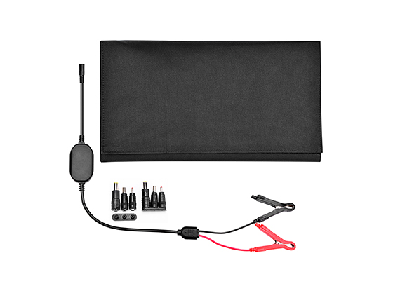 在太阳下给12V~18V电池相关产品及储能设备和给手机/平板电脑/移动电源/PSP/MP4/GPS/蓝牙耳机等5V及QC3.0和PD协议的相关电子设备充电。